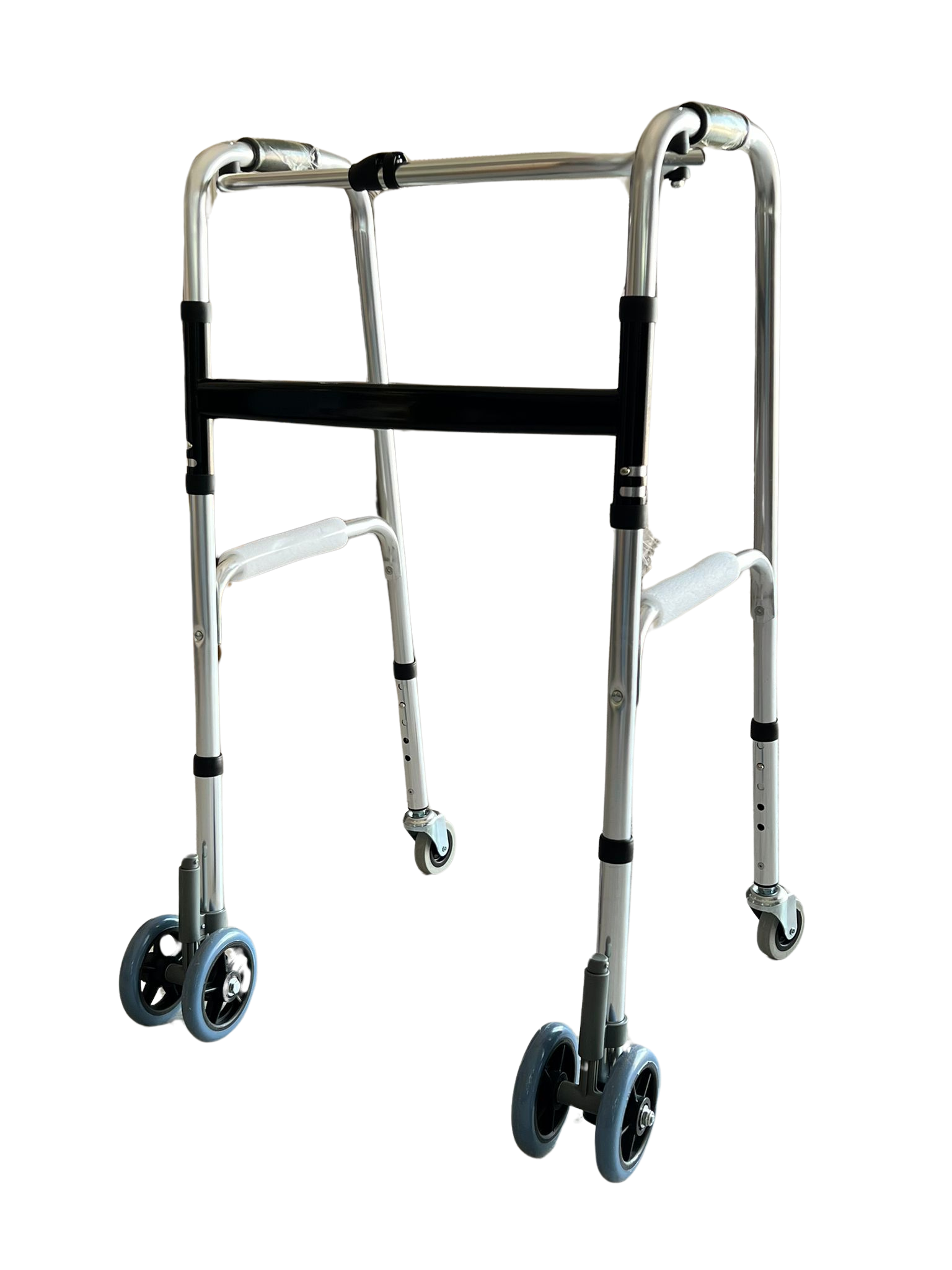 Déambulateur pliable réglable en hauteur 4 roues - avec 2 roues jumelées à rotation frictionnelle