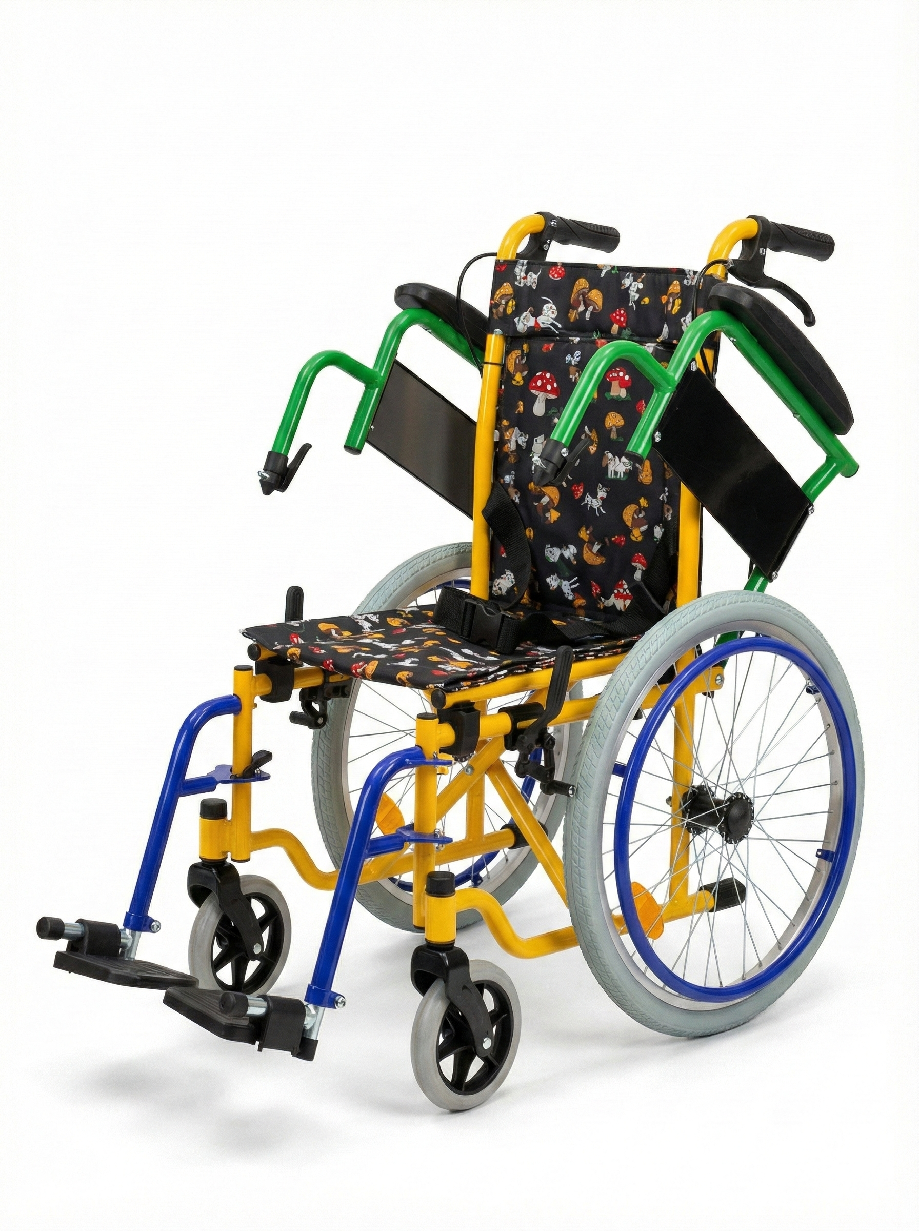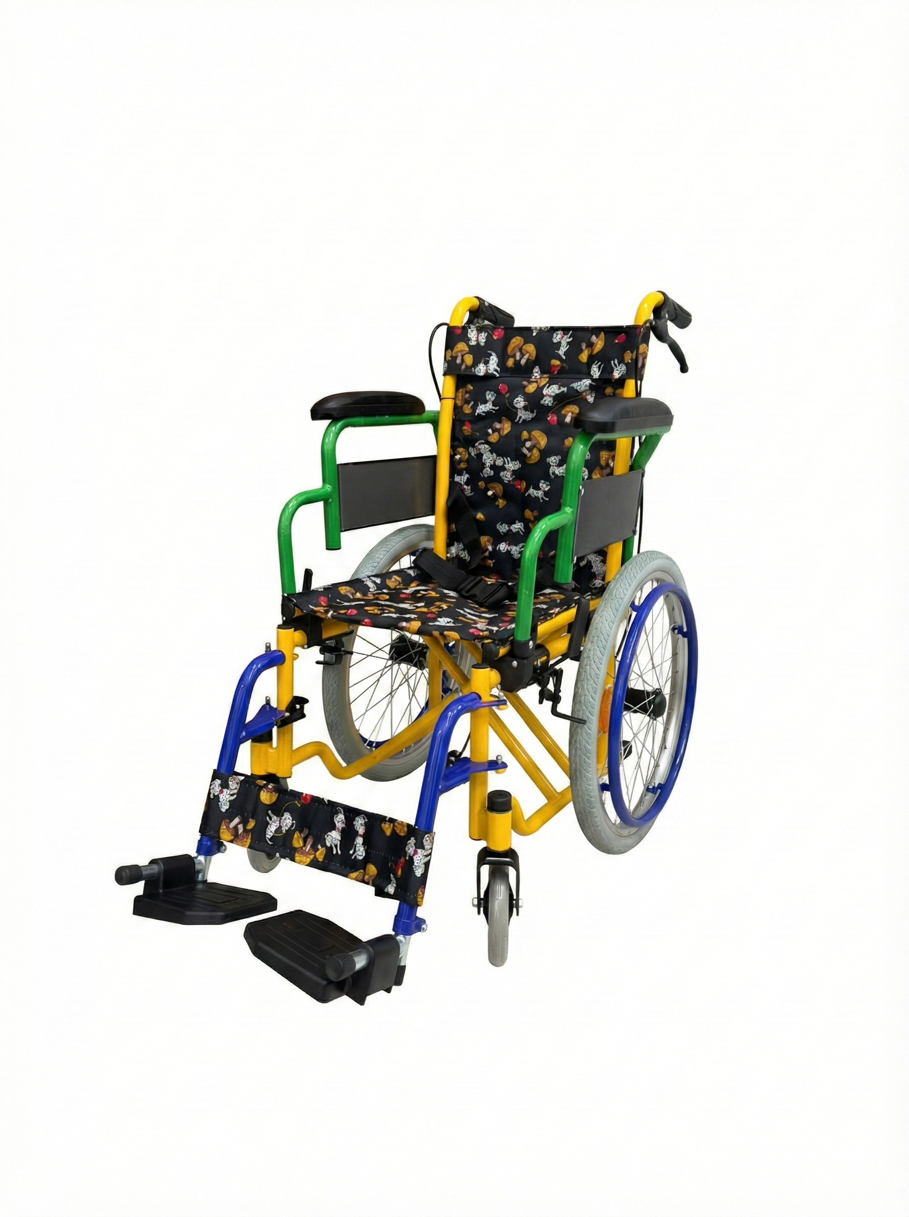 Fauteuil Roulant Pédiatrique Pliable "Happy Friends" – Confort, Couleurs et Sécurité