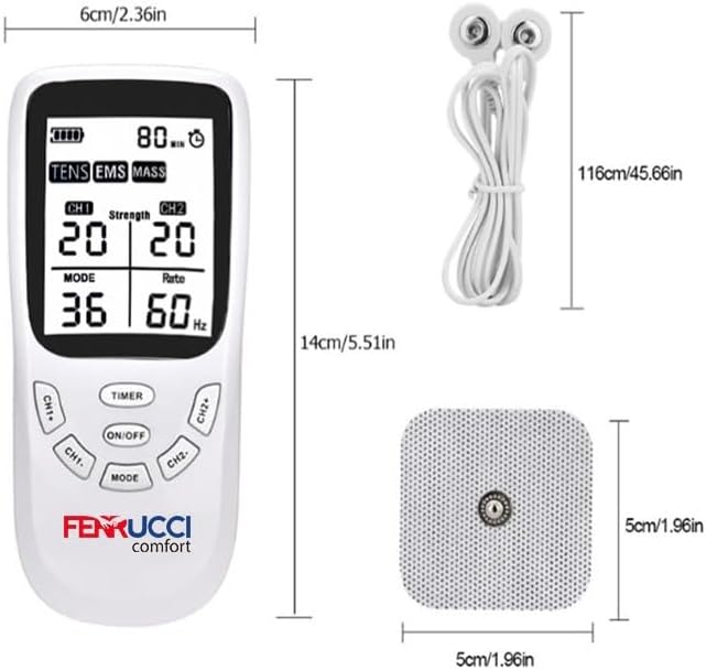 Dites adieu aux tensions musculaires avec l'Électrostimulateur Professionnel 3-en-1 de Ferrucci Comfort. Alliant les technologies TENS (anti-douleur) et EMS (renforcement et récupération), cet appareil polyvalent offre une solution naturelle, sans médicaments, pour traiter vos douleurs chroniques et optimiser votre bien-être au quotidien. Que ce soit pour une sciatique, des douleurs cervicales o simplement pour vous détendre, ses 2 canaux indépendants vous permettent de traiter deux zones simultanément.