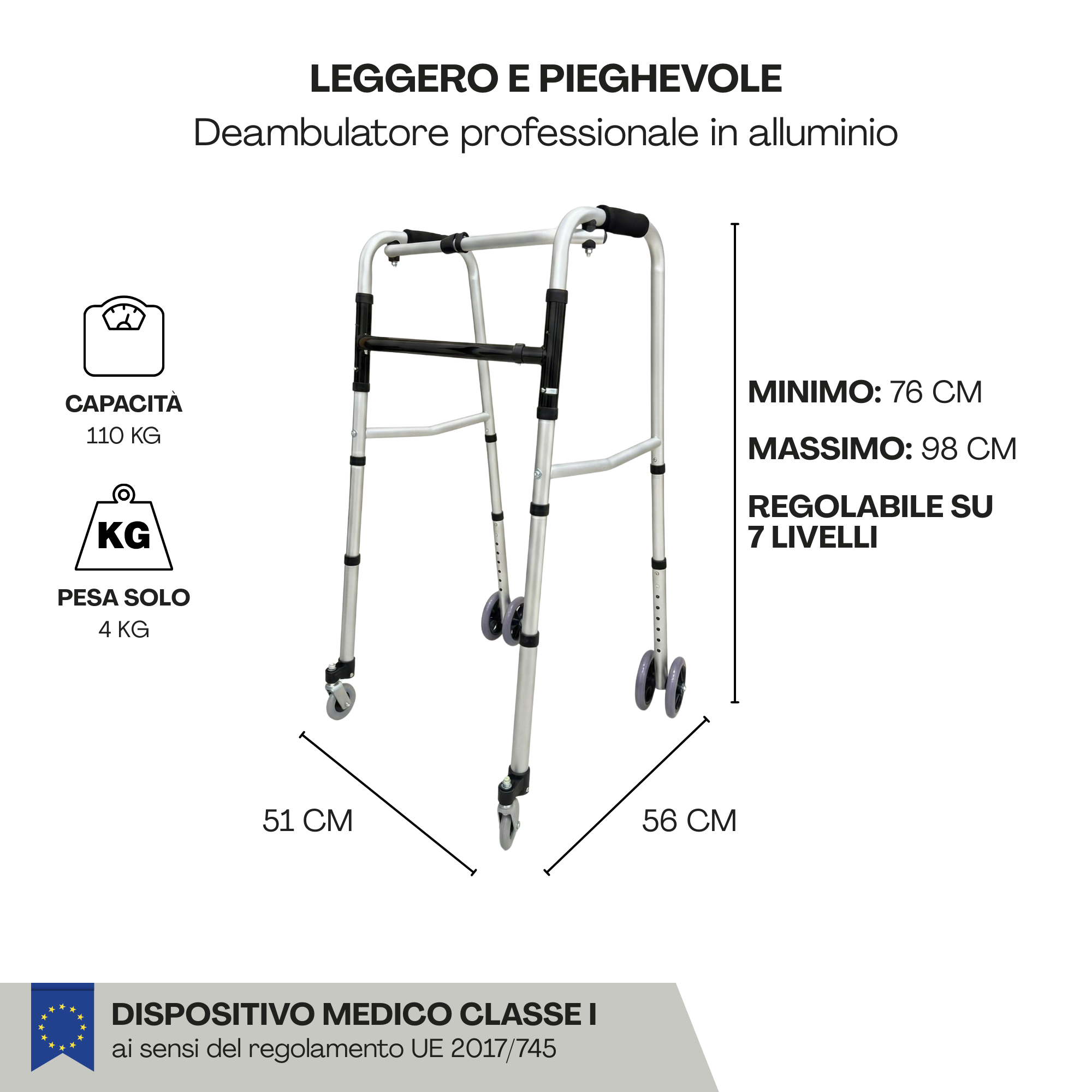Équipé de 3 ou 4 roues, pour une marche fluide et sans effort.