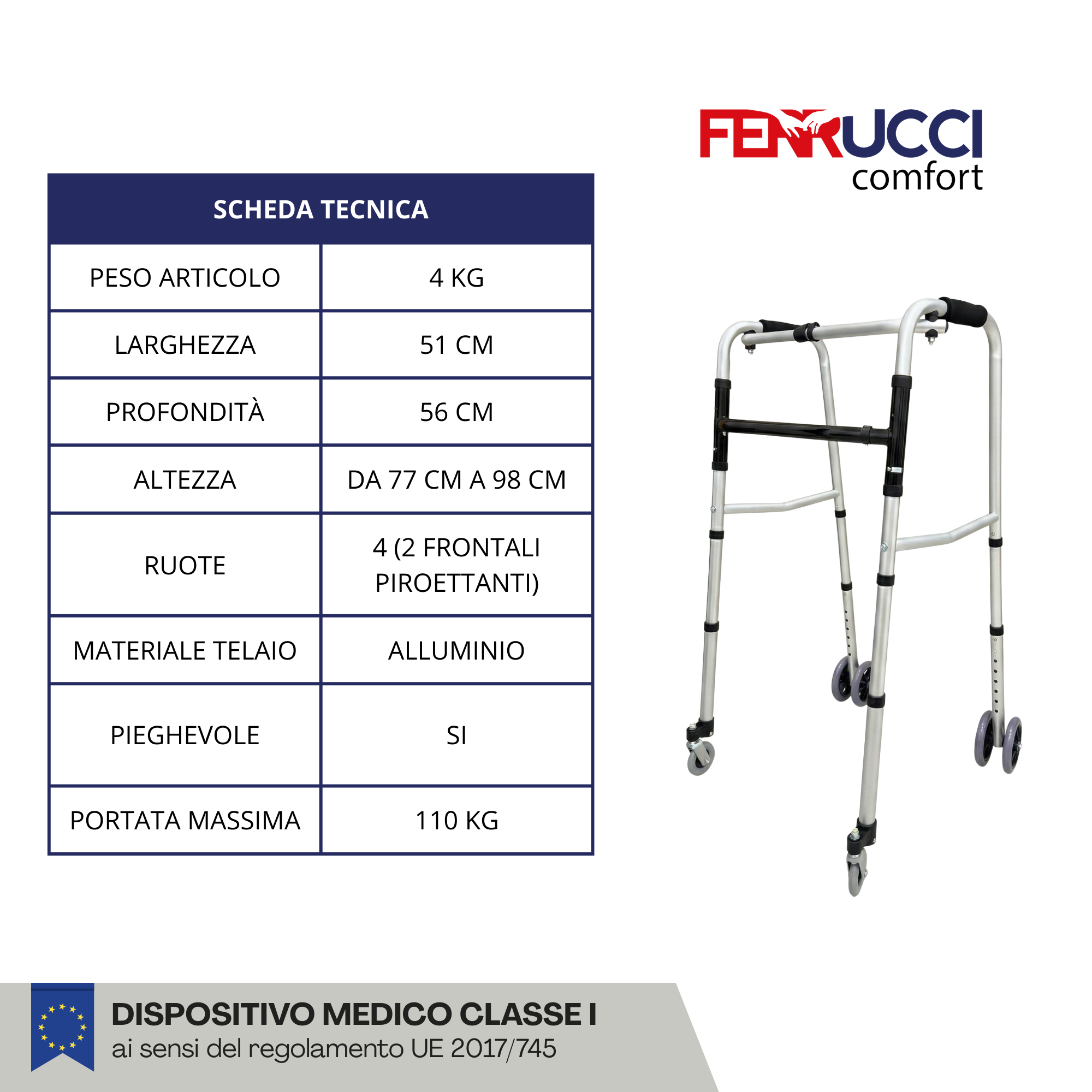 Chez Ferrucci Comfort, notre gamme de déambulateurs et rollators a été conçue pour offrir aux personnes à mobilité réduite une solution de déplacement sûre, confortable et adaptée à toutes les situations. Que ce soit pour des déplacements intérieurs ou des promenades extérieures, vous trouverez chez nous une aide à la marche parfaitement adaptée à vos besoins.