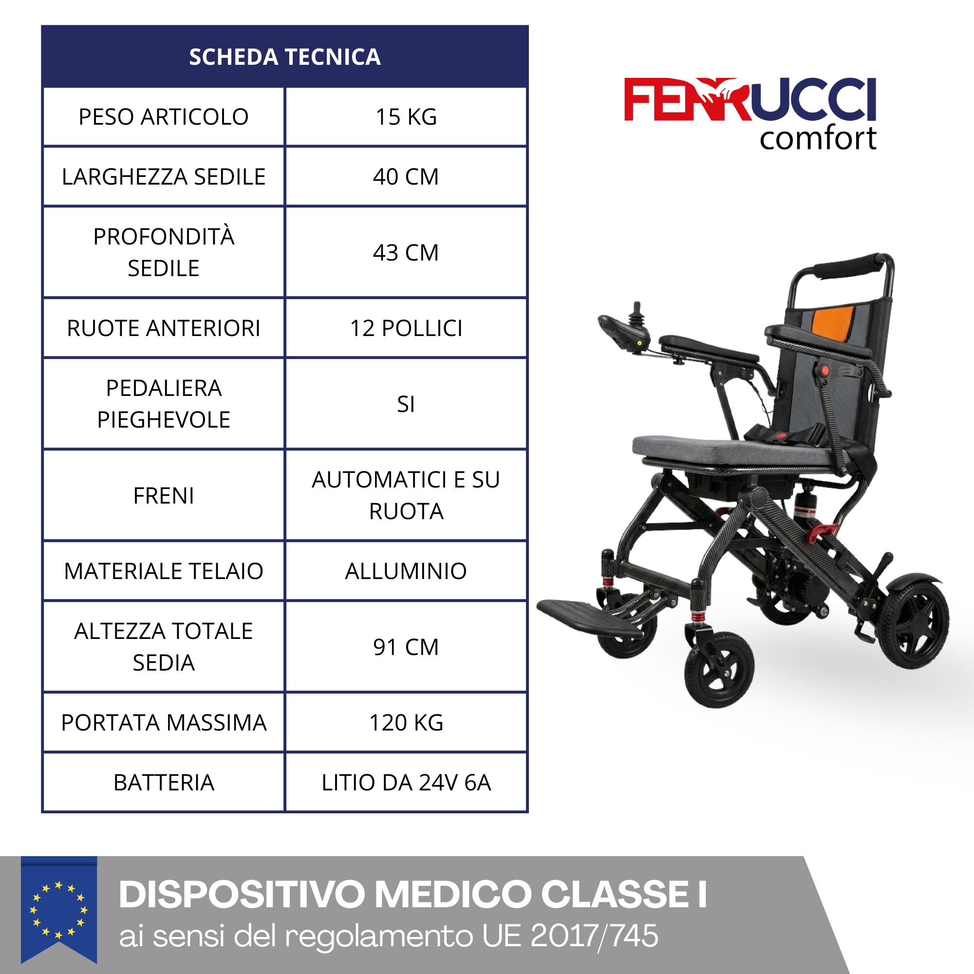 Chez Ferrucci Comfort, nous mettons la technologie au service de votre liberté avec notre gamme de fauteuils roulants électriques. Conçus pour offrir autonomie, confort et praticité, nos modèles s’adaptent à toutes les situations, en intérieur comme en extérieur, pour améliorer votre quotidien.