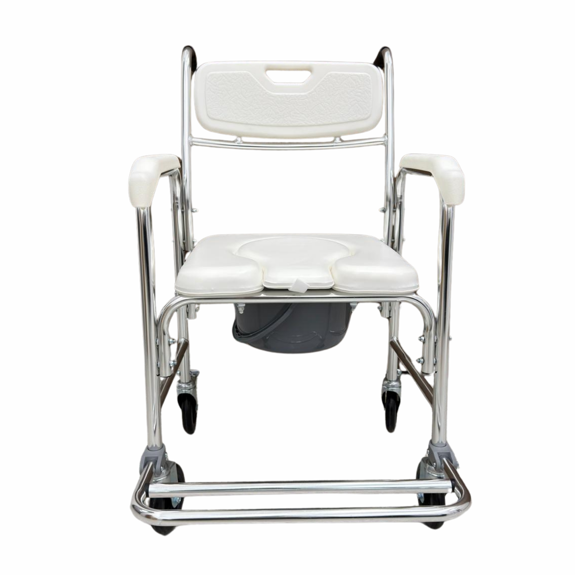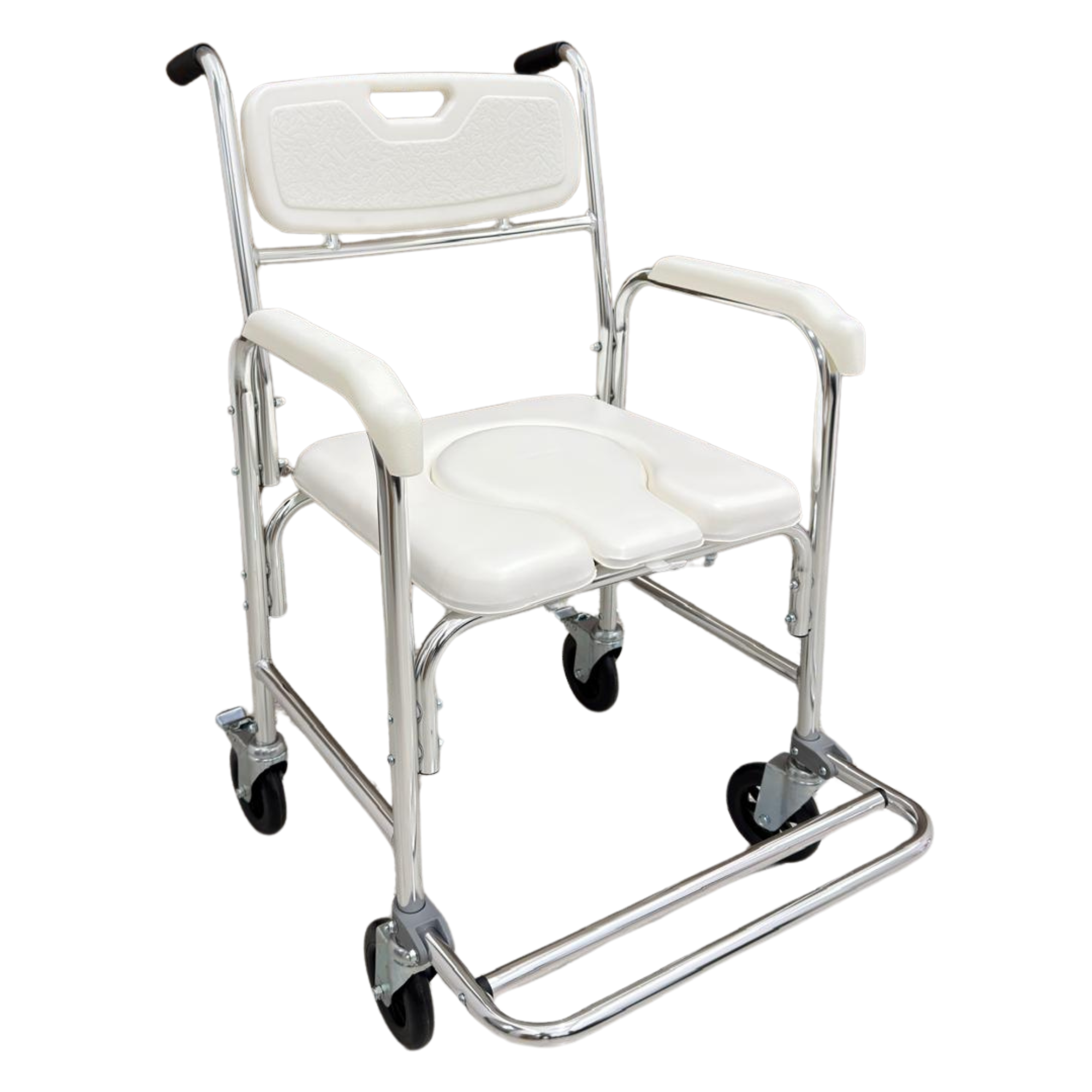 Chaise Percée de Douche et WC avec Roues - Assise Anatomique Rembourrée en Aluminium