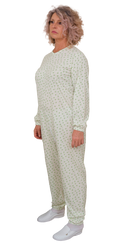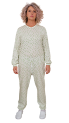 La grenouillère est dotée d’une longue fermeture à glissière, qui s’ouvre jusqu’à l’entrejambe, facilitant ainsi l’habillage et le déshabillage, même pour les personnes à mobilité réduite. Ce système de fermeture simplifie l’usage quotidien et réduit les efforts nécessaires pour enfiler ou retirer la grenouillère, ce qui est particulièrement utile pour les soignants.