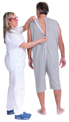 Le pyjama hygiénique est équipé d'une fermeture à glissière dans le dos, facilitant le travail des soignants pour le changement d'aides tout en garantissant la dignité du patient. Ce design pratique permet une gestion facile de l'incontinence, tout en assurant un confort optimal pendant le sommeil ou les moments de repos.
