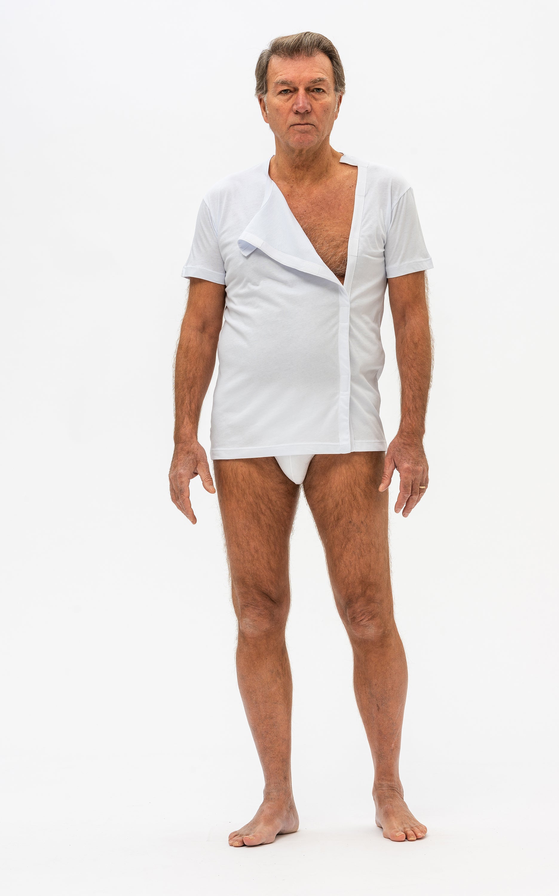 Optez pour la praticité et le confort avec notre T-shirt sanitaire ouvert, conçu pour les soins médicaux et post-chirurgicaux. Parfait pour un accès facile aux zones nécessitant des pansements ou des traitements, il assure à la fois confort et efficacité. Découvrez-le dès maintenant sur Ferrucci Comfort.
